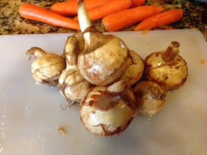After fumbling my way through peeling them I just boiled them simply. Wow, much more flavor then what I grew up eating as the crunchy mystery vegetable in my cashew chicken. When I found this video, I realized I wasn’t missing anything in regards to peeling them, such as blanching or something; you just get after it. I did find that nipping the tops off and boiling with most of the skin on produced a flavor closer to artichoke. That flavor was extremely exciting for me since before that, water chestnut flavor was empty. Added them to salads that were heavy with fresh peas and strawberries.