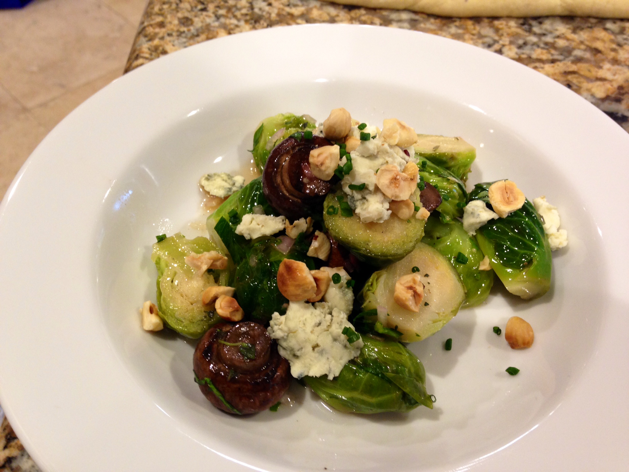 I didn’t know…but I knew I’d use them to accentuate a random brassica driven dish. So… while at the market later in the day, I came across illegally cute, Smurf size brussels sprouts. I decided to go with a variation of a salad I did a year or two ago. One that was based on heavily marinated brussels sprouts and grilled mushrooms. The salad was soaked with a truffle vinaigrette along with fresh herbs and other points of interest.