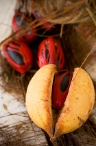 We get tons of nutmeg seed imported into the states; how is there not a market for this yellow fruit and it’s fresh red mace? The fresh mace can also be steeped to add color to a dish. I wonder if the yellow fruit from the nutmeg in my cupboard was put to waste?