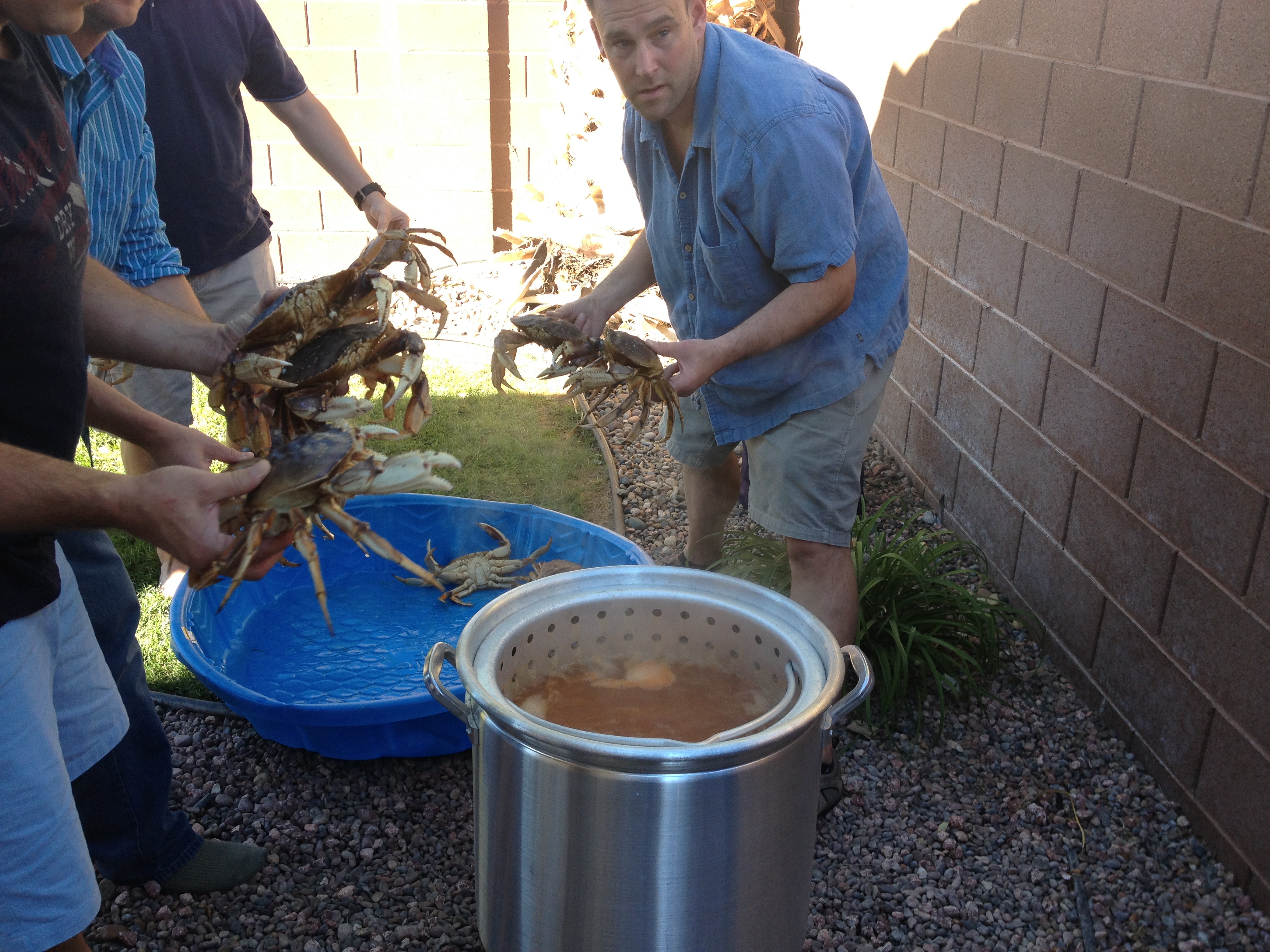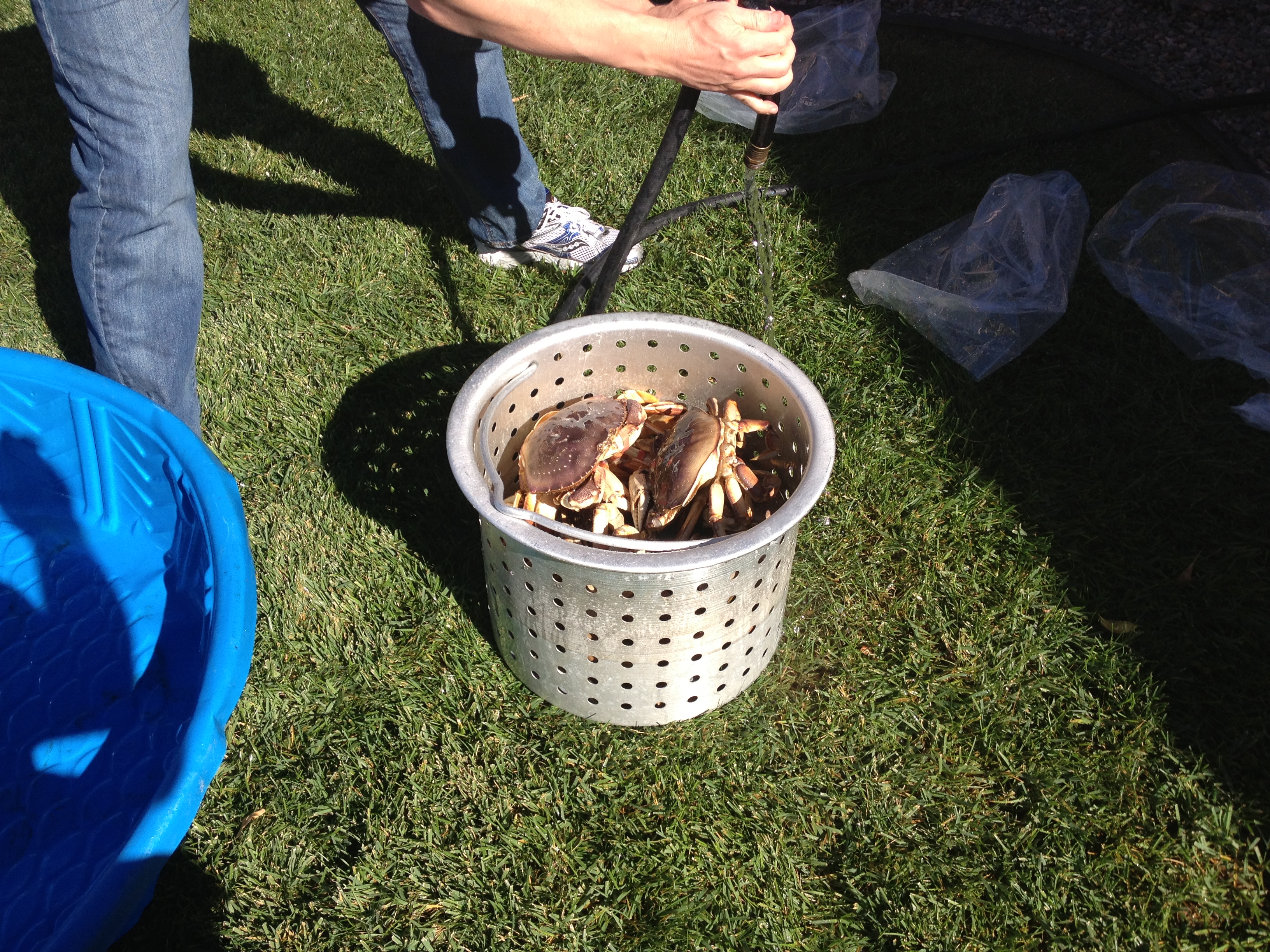 A plan was made and carried out to obtain fresh crab. Enter me…the guy in sunny, saltwater San Diego; where the bounty of the ocean is at our fingertips, and the crabs run free for the taking! Yeah, no. Here’s the thing: We wanted fresh crab that has body meat–for that, our choices are limited. East coast Blue crab is well…on the east coast. Out here we can get Dungeness crab, but it’s on the north coast and it’s not crab season.