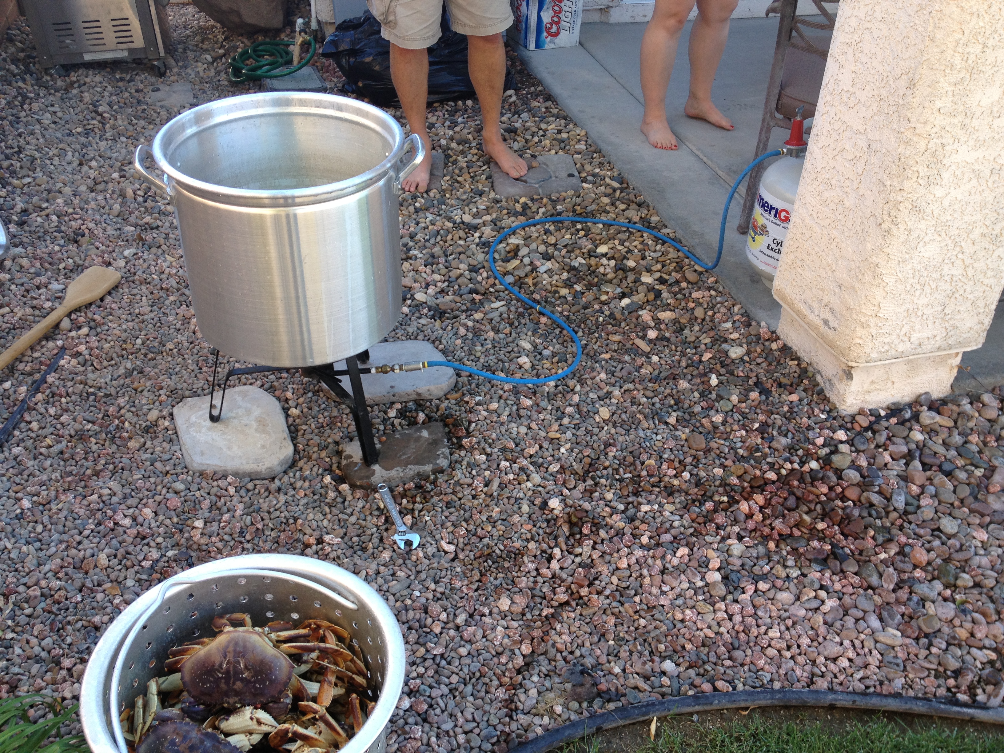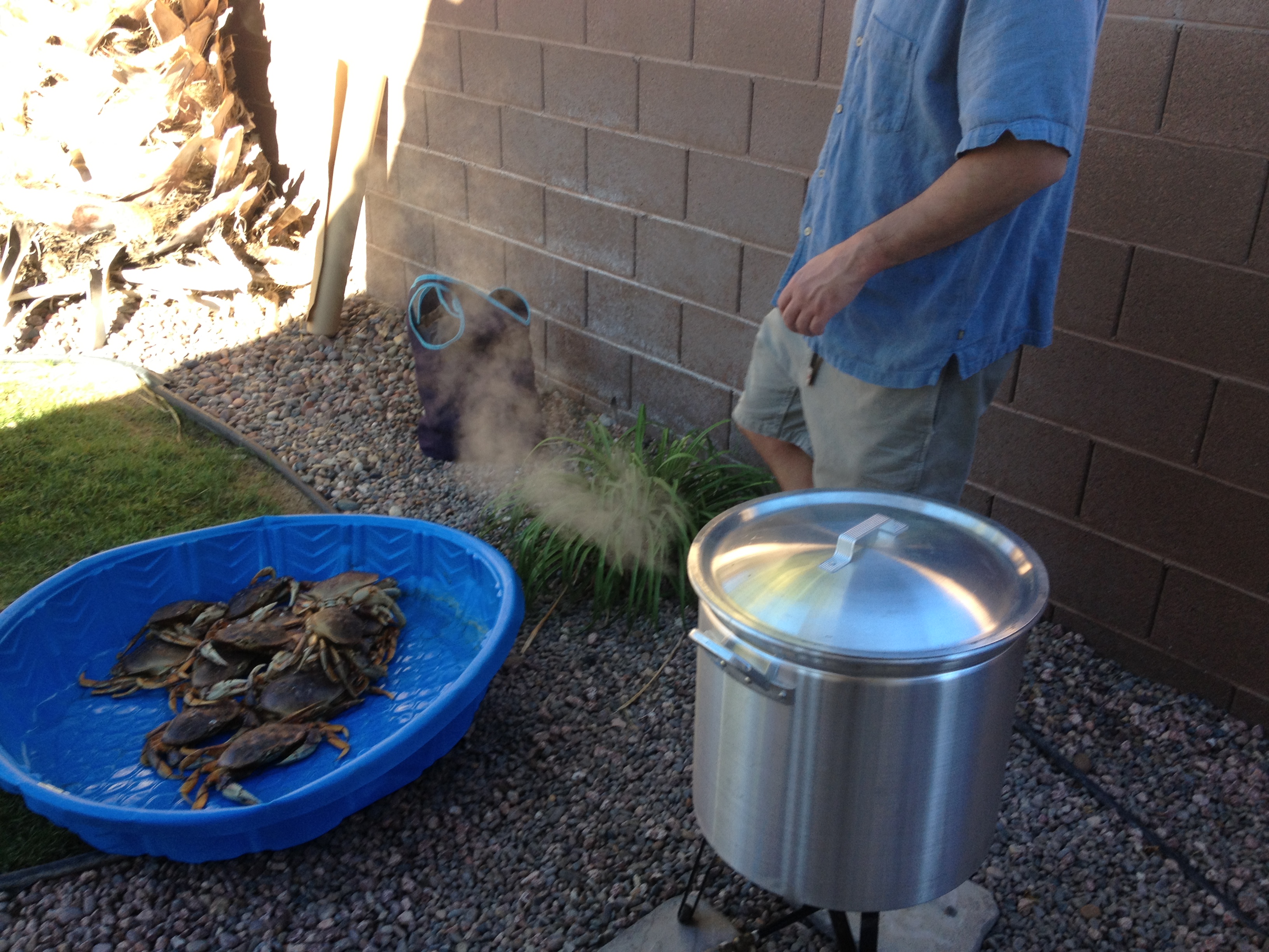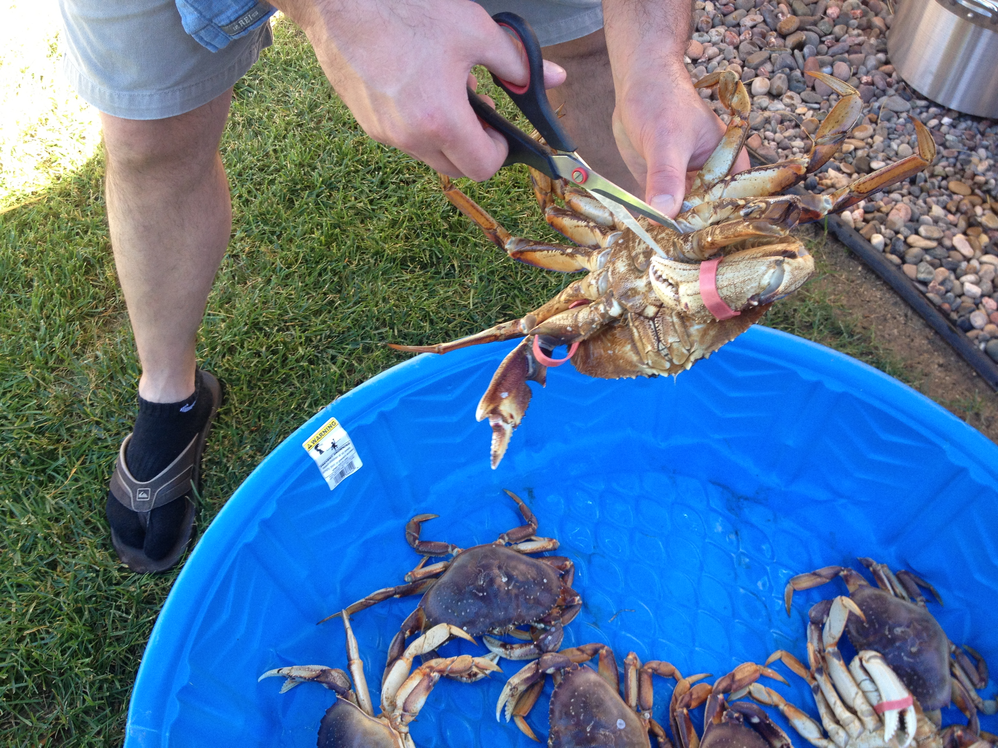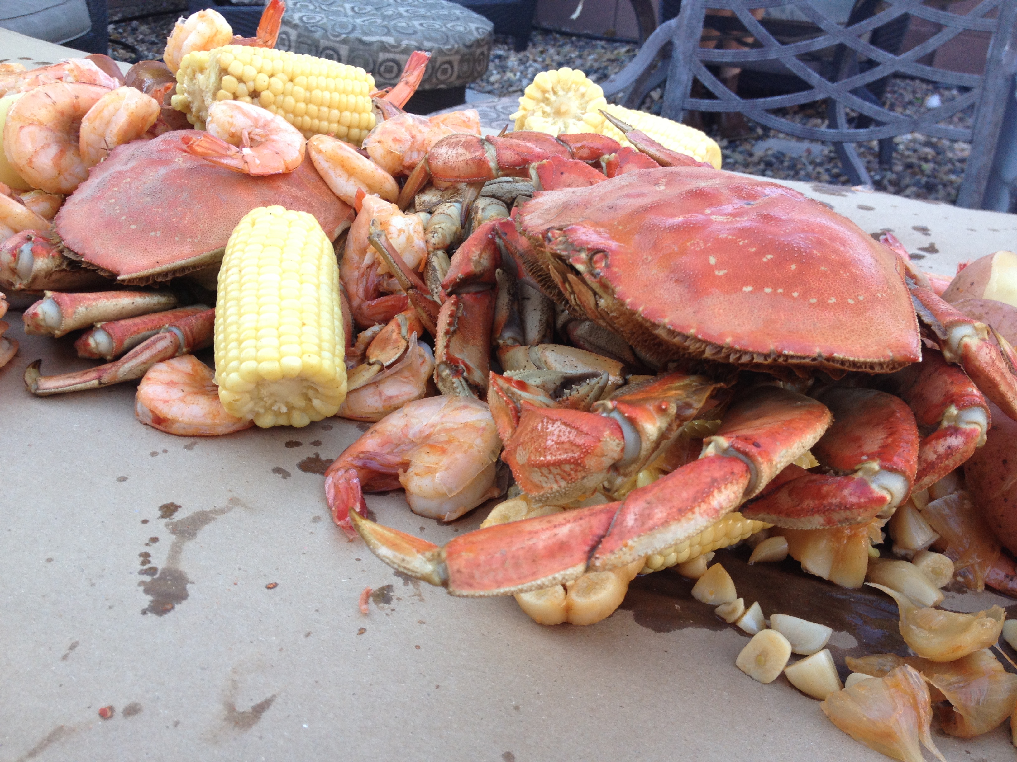 San Diego has rock crab, which are cool, but they only have claw and arm meat. Some Asian markets have farmed crab but no reason to bring farmed crab from San Diego. So, Scott and my brother tracked some down at an Asian market around Vegas for about $15lb. Shrimp was from Costco; frozen but still big and tasty.