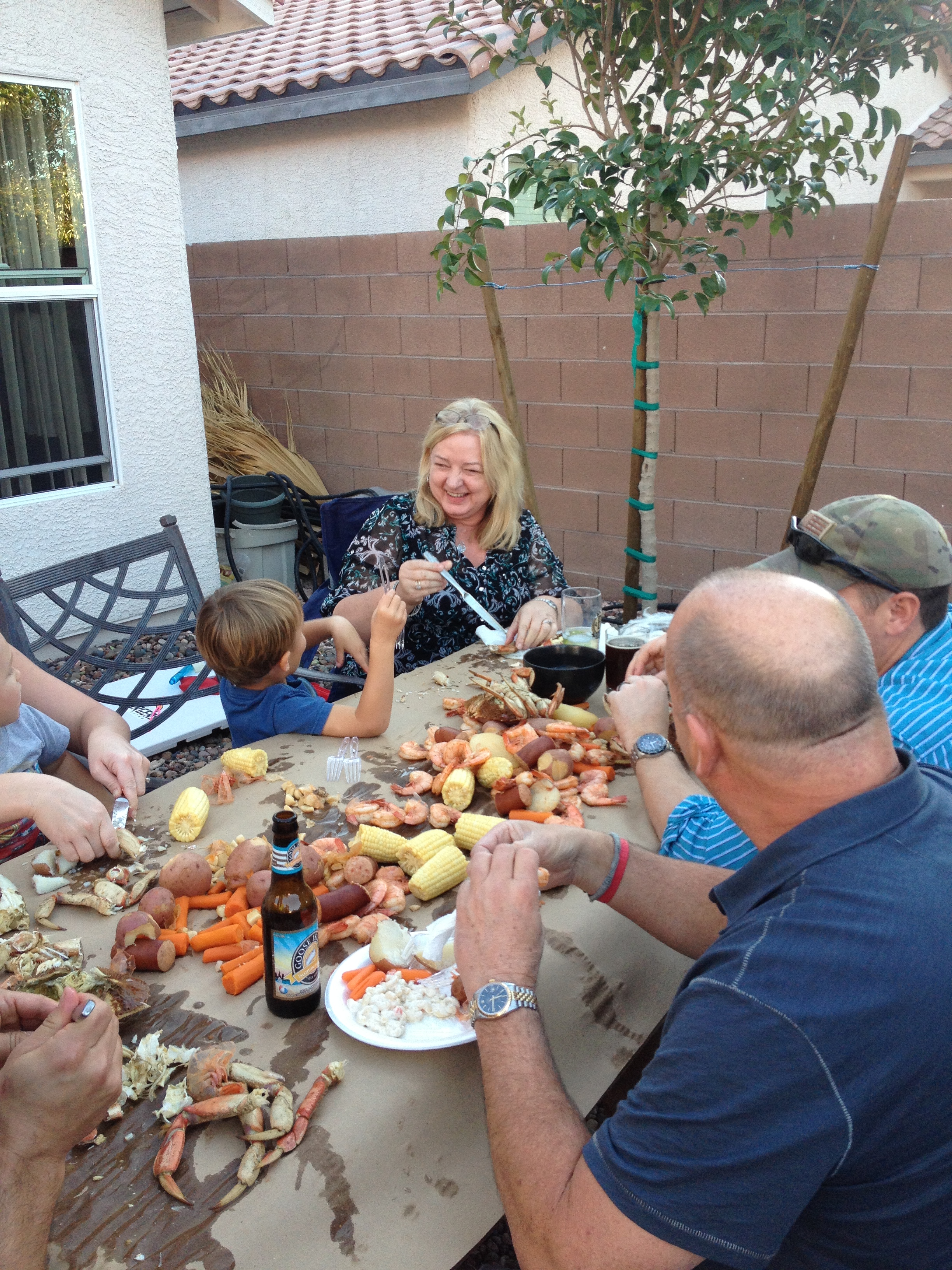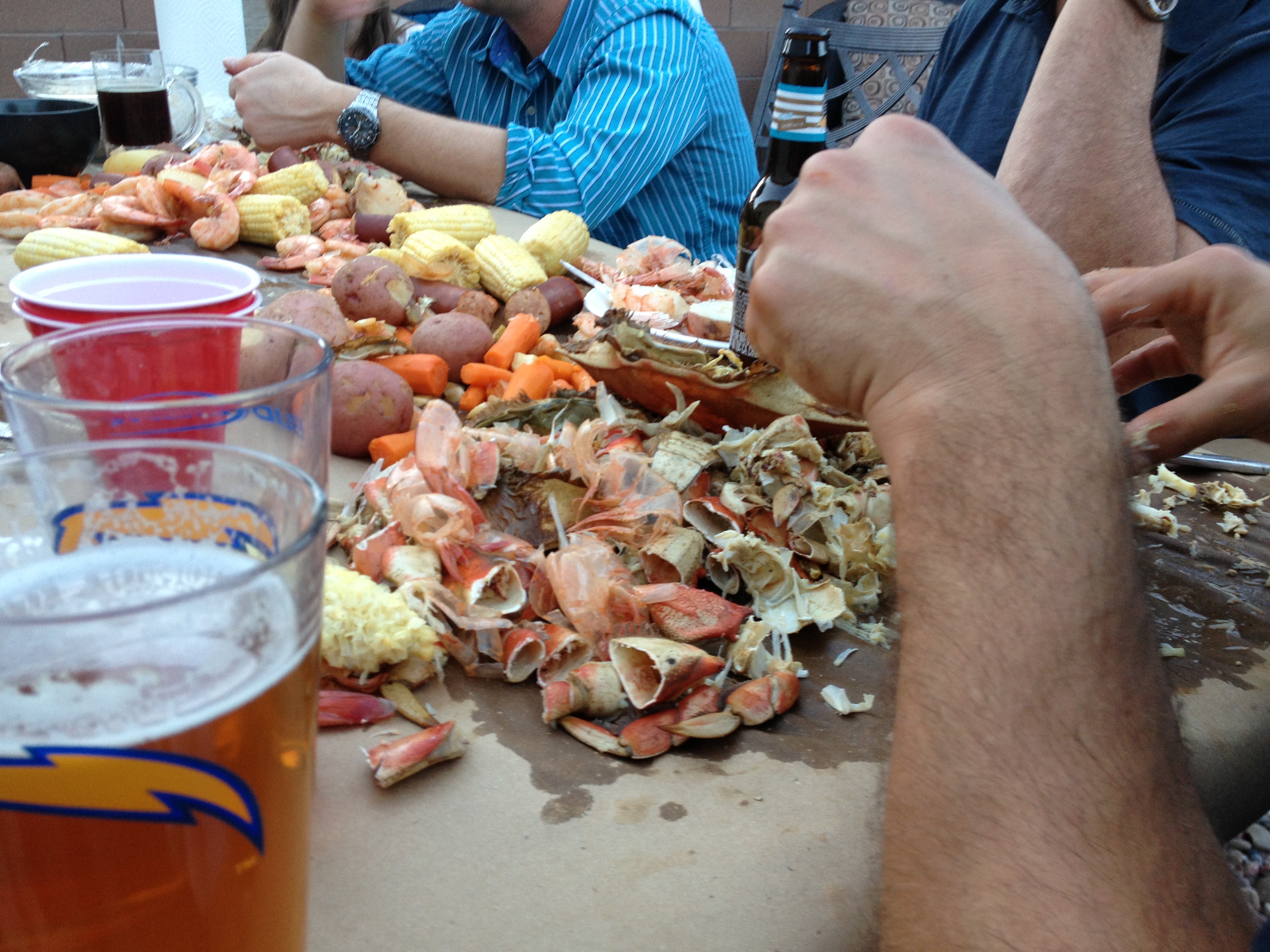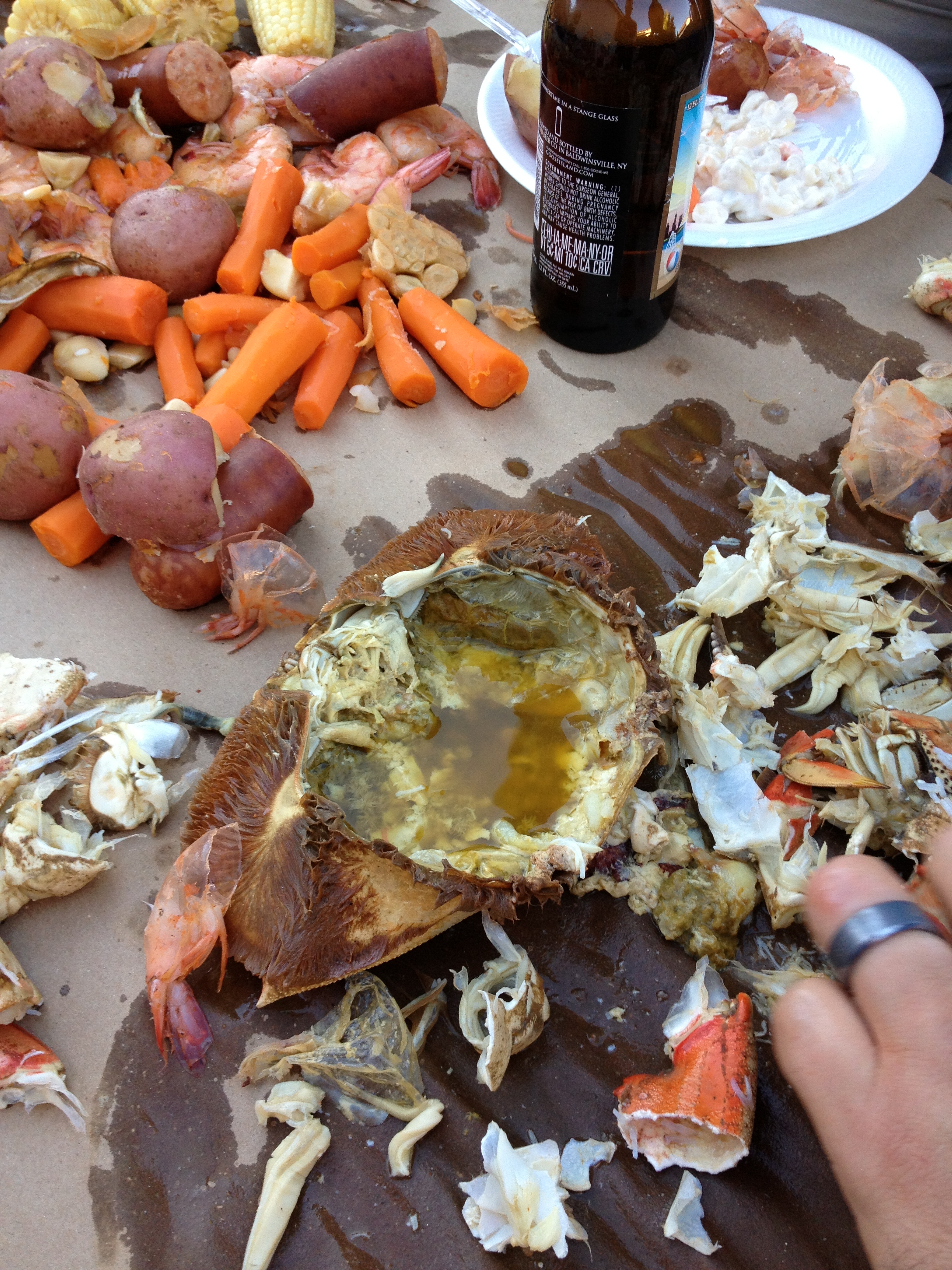 The American bounty that cascades over the table is a standard and a testament to our culture as Americans and our truly American Southern food history. After the feast there were a few crabs left, so my wife and I got after it and picked out all the meat for crab cakes the next morning. Which were by the way, the best crab cakes any of us had had…ever. After we cleaned up the tables I felt like Pig Pen…except the little dust clouds surrounding me were funky clouds of crab.